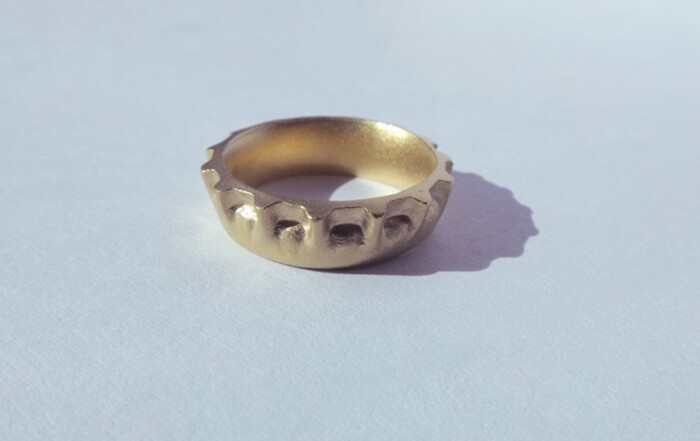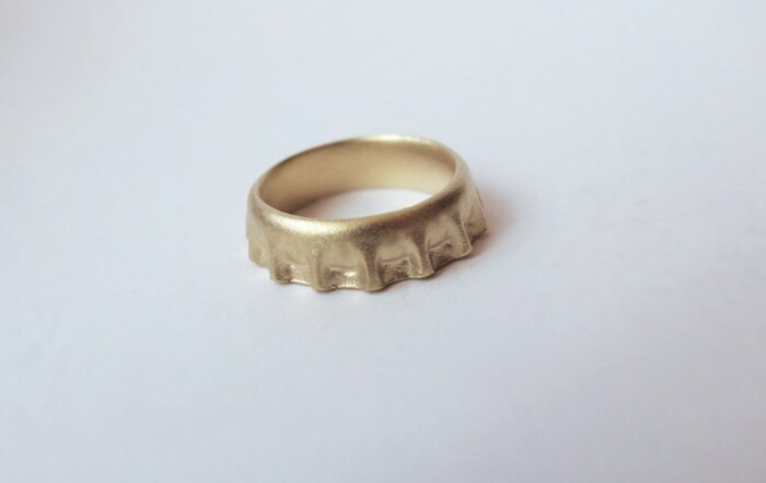 Krone Fingerring vergoldet, € 170 Auf der einen Seite schlicht, rund und glatt, auf [...]